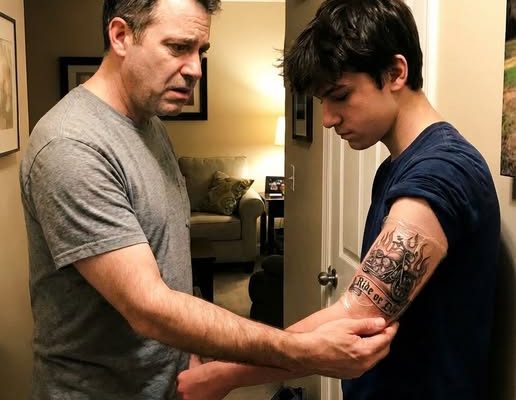 The shock ran deeper than parental surprise. I had never shown Marcus photos of Jake’s tattoo, and I rarely spoke about that chapter of my life. My brother and I had shared a bond built on adventure and loyalty, but his sudden passing left behind grief I tucked away rather than processed. Marcus told me he chose the design from a shop’s sample book because it “just felt right.” That explanation only deepened the mystery. How could my son unknowingly select something so closely tied to our family’s history? The coincidence forced me to revisit emotions I had long tried to sidestep.