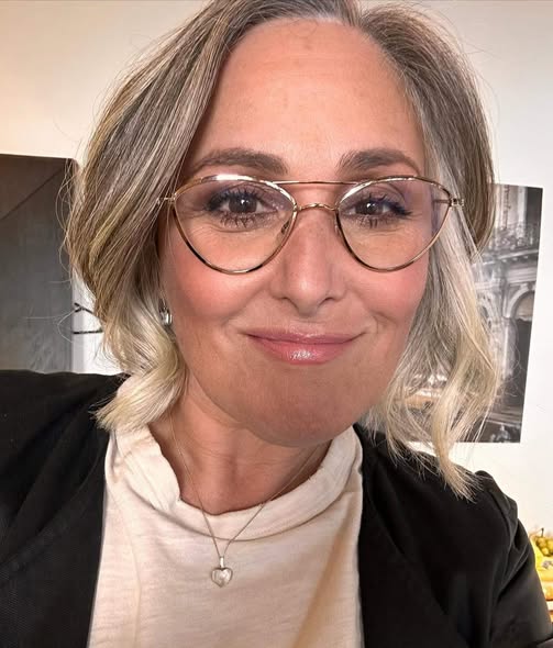 Lake’s hair has grown back in since she shaved her head, and she’s come to terms with having a “natural gray and sometimes wild unruly head of hair.”